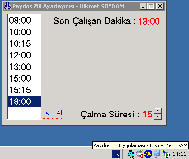 PC Tabanli Role Kontrol (Relay Control) Paydos Zili Uygulaması Windows 2003 x64 Server işletim Sistemi için geliştirilen bu uygulama sayesinde işletme içinde kullanılan uyarı zilinin kontrolü sunucu üstünden yapılmaya başlanmıştır. Devami İçin Tiklayiniz... |